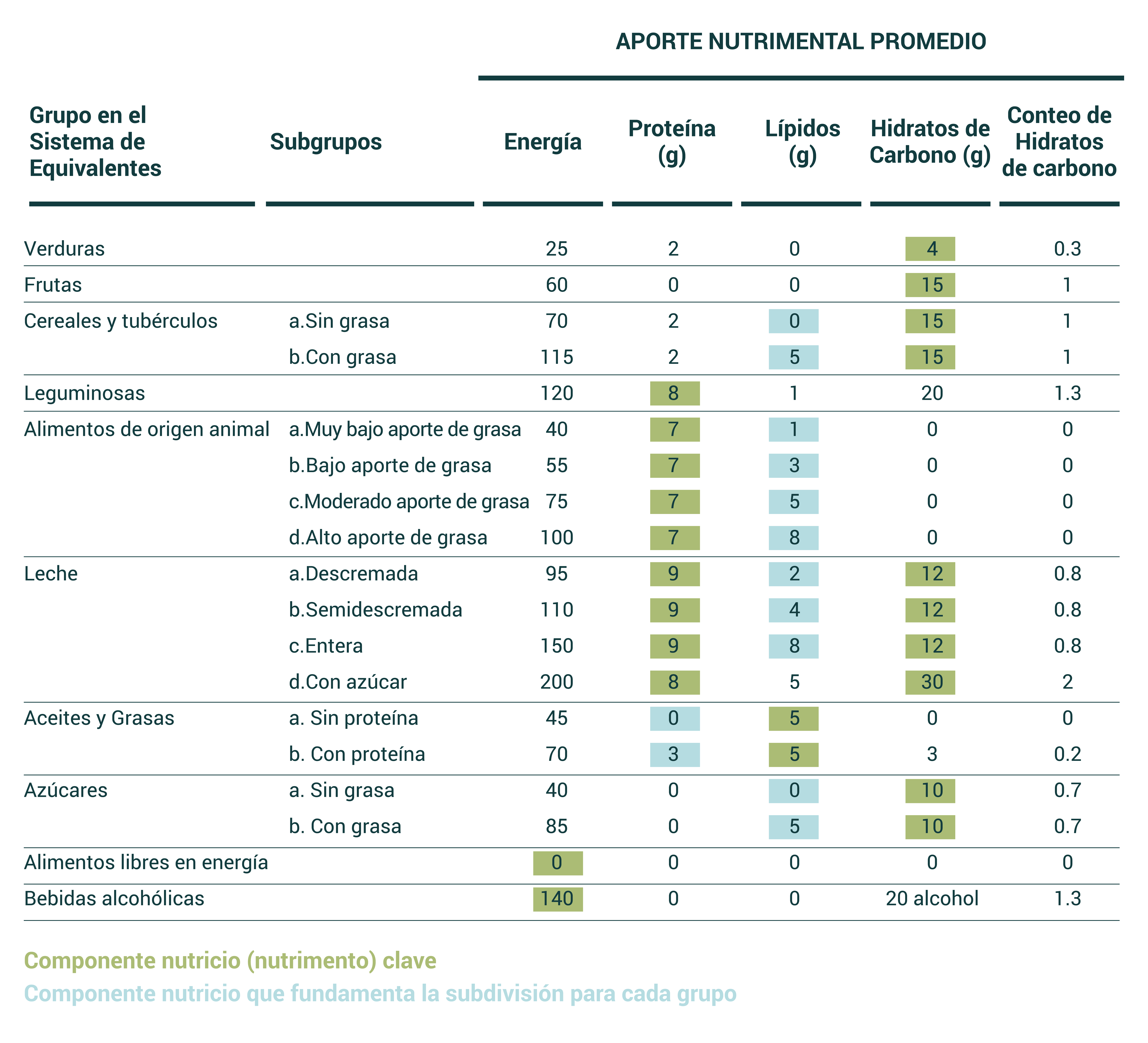 SMAE es un sistema que funciona por alimentos equivalentes, es decir, aquella porción (o ración) de alimento cuyo